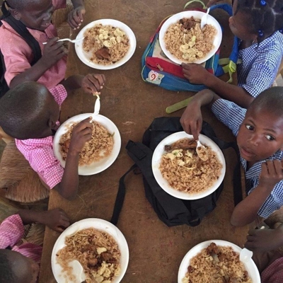 In Mathone, in addition to a school, we've built a kitchen, a well, and a basketball court. We provide supplies, uniforms, and hot lunches for 160 students on a daily basis and employ teachers, a principal, and staff for the school. In No